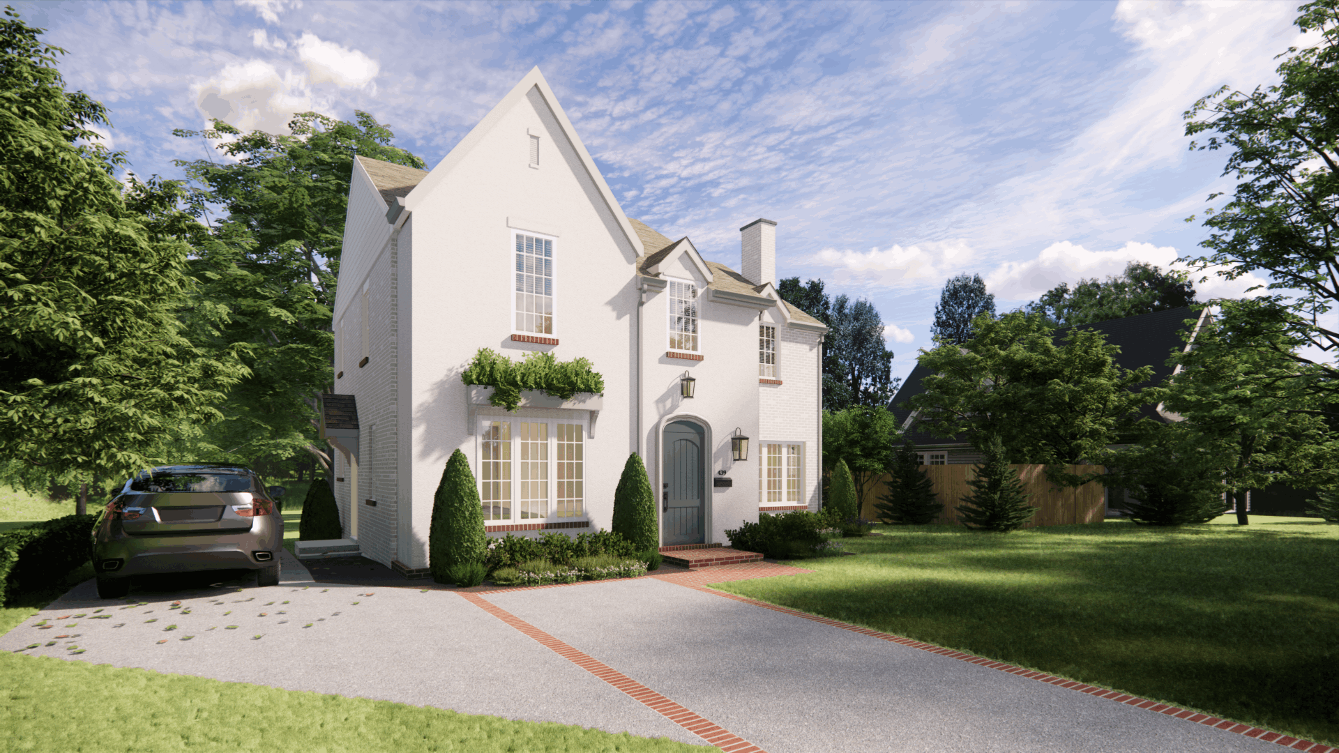 This project transforms a 1950s developer home into an English Cottage–inspired residence, reflecting the owners’ desire to rethink the home’s architectural character while fitting with the styles found in this historic town and the pedestrian scale of the street it occupies. The renovation reconfigures the interior layout to provide a new kitchen, bedrooms, and bathrooms, along with a second-floor laundry room, while adapting the existing garage footprint to create an office/bedroom with full bath.