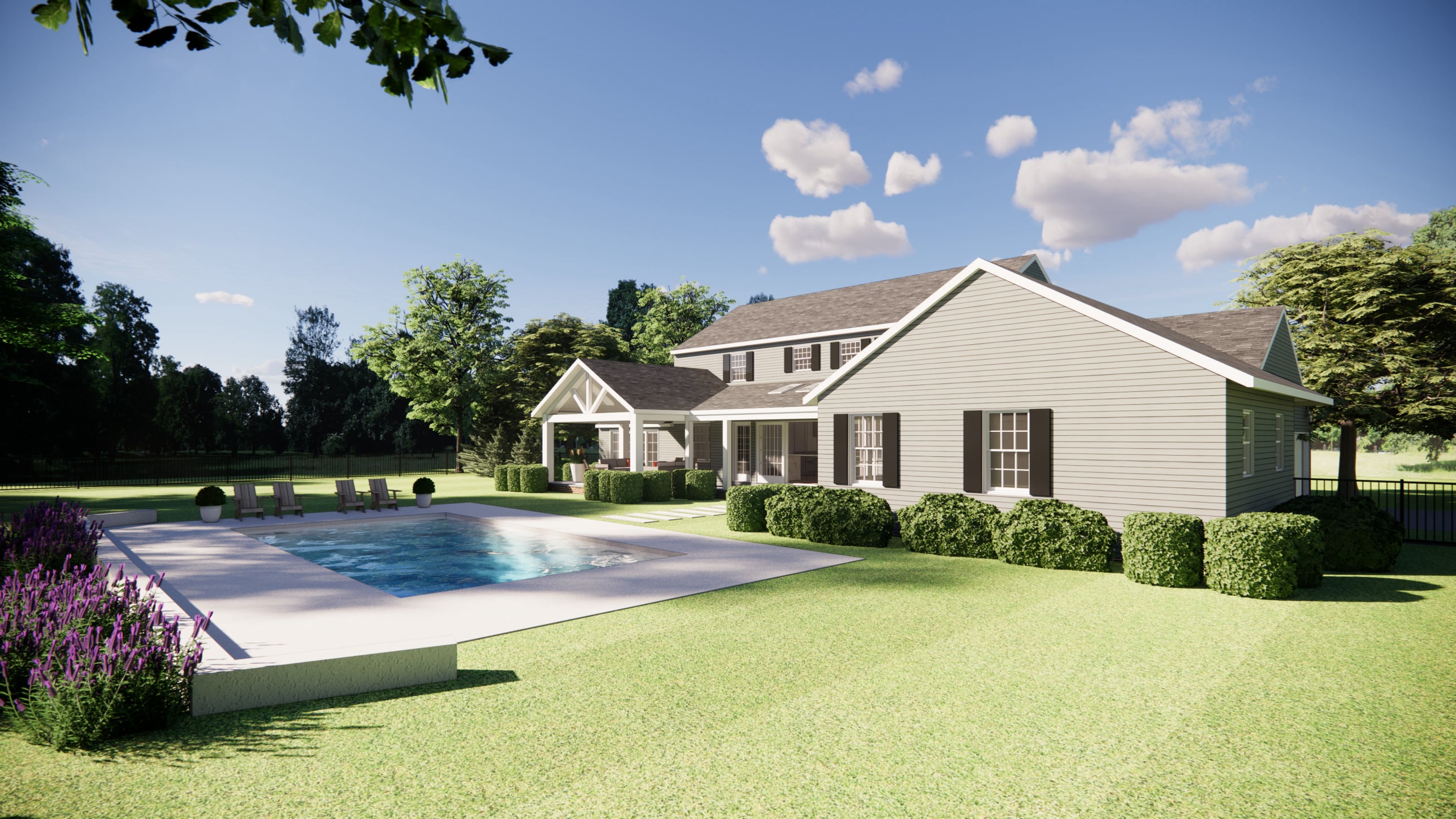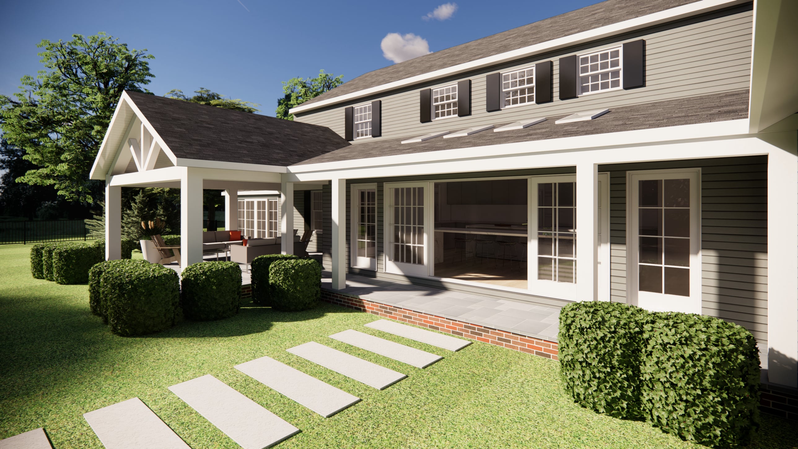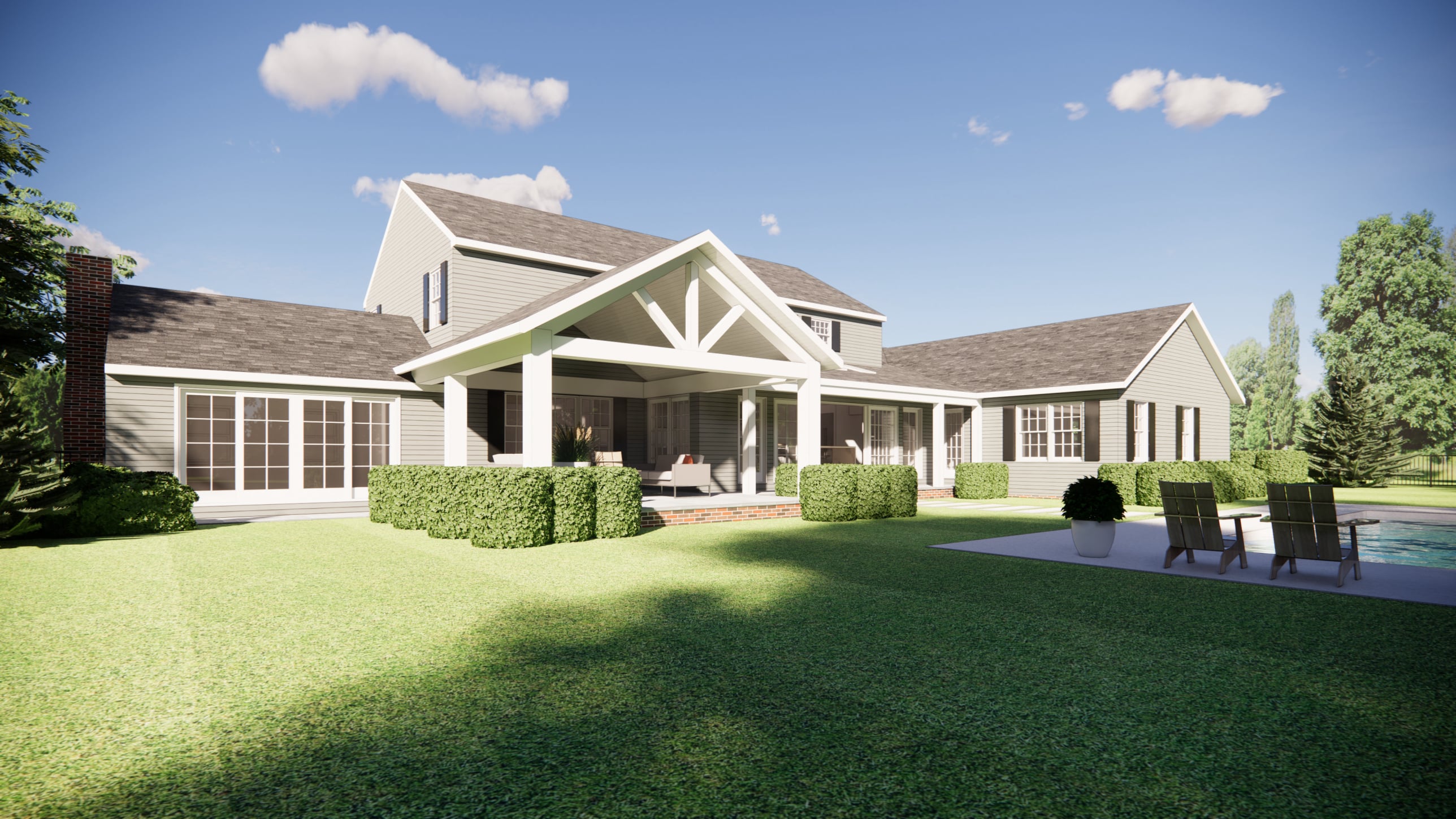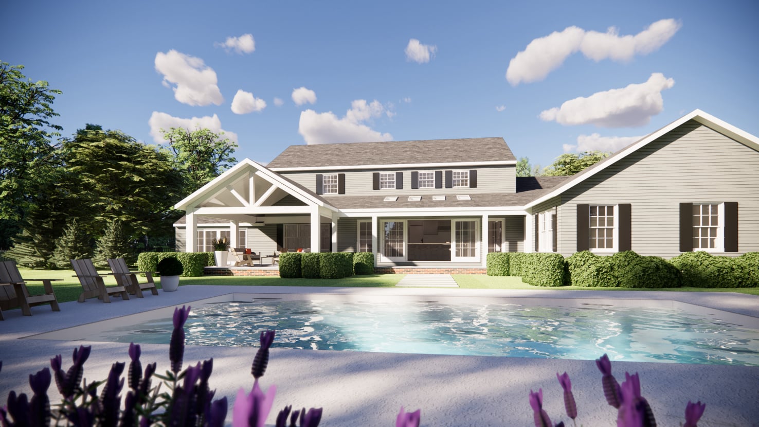 This project combines an addition and interior renovation to support a growing family and their outdoor living lifestyle. An attached in-law suite anchors the design, connected through a covered porch and seating area as well as an opened, covered rear walkway, which the expanded kitchen opens onto, creating a seamless flow between indoor and outdoor spaces.